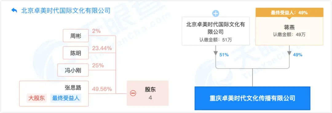 教培君查到在北京卓美儿童戏剧学院股权比例中,冯小刚以25%的股权份额成为第2大股东,第一大股东为张思路,持股比例为49.56%。而重庆卓美时代文化传播有限公司是北京卓美时代国际文化有限公司的控股子公司,占股比例为51%,另一投资方为蒋燕,占股49%同事也是最终受益人。卓美目前在重庆只有一家校区。