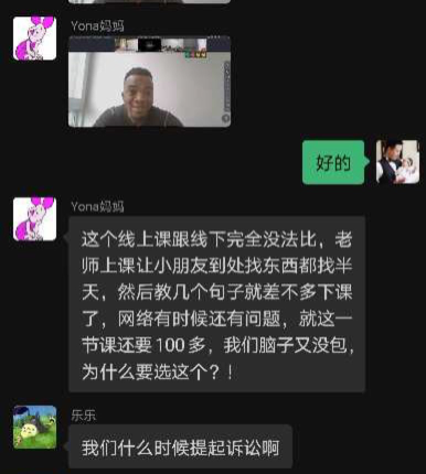 但线下转换到线上课,家长并不买单。有家长体验过线上课之后表示,和线下课程根本没法比。老师上课会让小朋友到处找东西,然后教几个句子差不多就下课了。