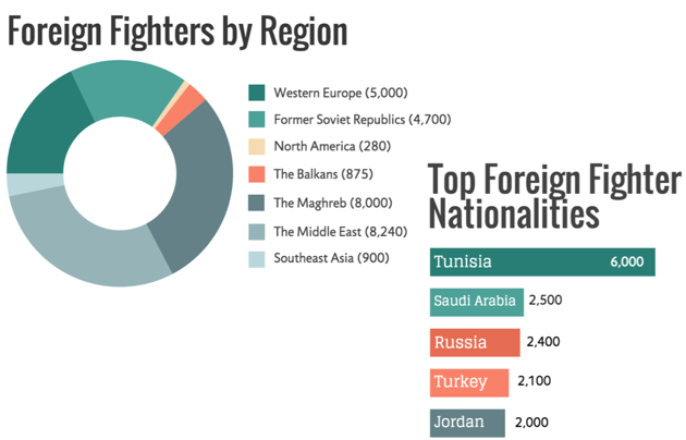 确实,有大批圣战者离境去叙利亚和伊拉克参战的国家要么有着高压的政治环境(如沙特,参战者2500人),要么政局陷入动荡(如突尼斯,参战者6000人),要么穆斯林作为少数派受到歧视(如俄罗斯,参战者2400人),或是以上因素兼而有之。