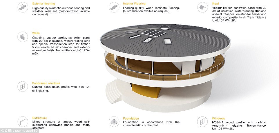 “SunHouse360”别墅拥有当今最新的技术支持。在白天,别墅不仅可以每隔15分钟追随太阳转动的路径而转动,而且还能根据室内温度,自动调节房屋转动的角度,最大程度利用太阳能。