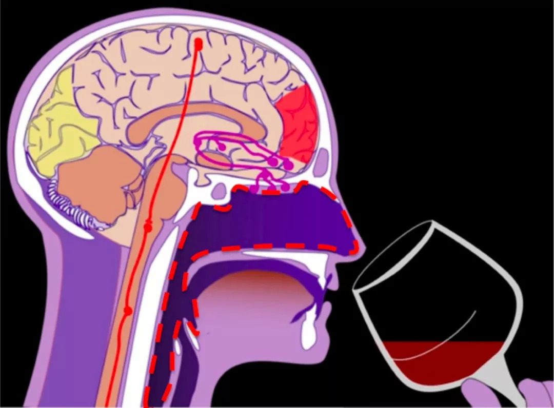 嗅觉这个东西,不光可以从前面进,还可以从嘴巴里「反味儿」。把东西放进嘴里的时候,气味分子会不断从后往前流溢,充满鼻腔,然后从前面排出去。