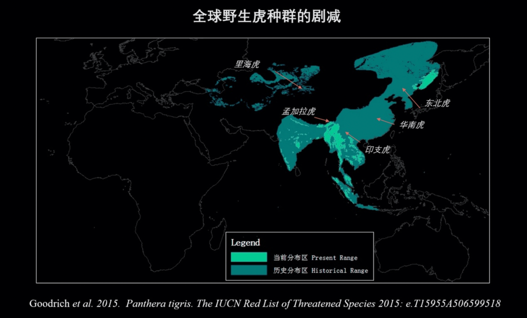 老虎在中国的传统文化、中国的社会中非常重要。本世纪初的时候,东北虎野生种群被认为只有500只左右,而它的兄弟东北豹数量却只有25-30只左右,距离灭绝仅一步之遥。