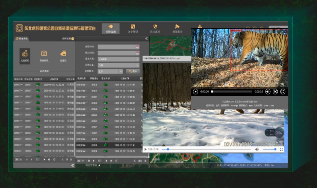 可获得东北虎豹国家公园内水文、土壤、气象、生物多样性乃至人类活动的实时信息,同时运用人工智能等技术,对这些实时获得的海量数据进行快速分析,为实际管理提供精准而有效的管理信息。