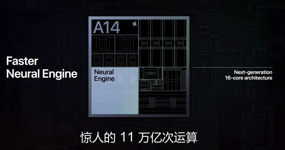 让人略感疑惑的是,A14的性能提升幅度并不算大,但晶体管数量却比A13要多很多,从85亿增加到了118亿,超过了图形性能爆炸的A12X。根据官方数据,我们可以发现,A14硬件规格上的升级重点,放在了NPU上。核心数从A13上的8核变成了16核,算力从6 TOPs增加到了11 TOPs,升级幅度相当惊人,和CPU、GPU性能上的挤牙膏形成了鲜明对比。