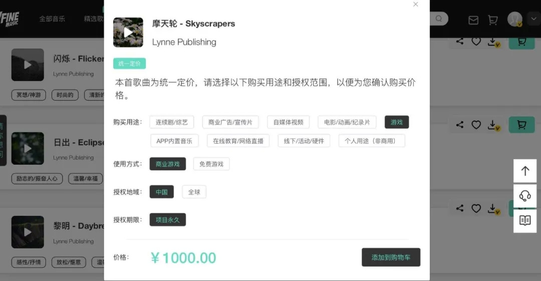 在这10亿美元之中,本身包含了多样化的企业需求,不管是星巴克、麦当劳的门店公播还是苹果等公司的广告,在自主付费意识下都为商用音乐版权提供客户来源。而YouTube、TikTok等中短视频平台也为数字商用音乐版权交易带来扩容,电商化的交易流程更为便利的满足在线平台的商用需求,贡献了传统企业需求之外的新增量。