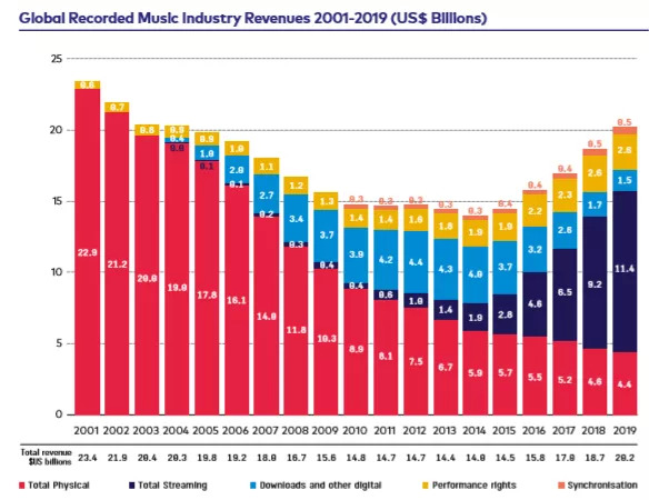 在流媒体的带动下,全球音乐市场在线上流量的加持下呈现出新的增长机会。