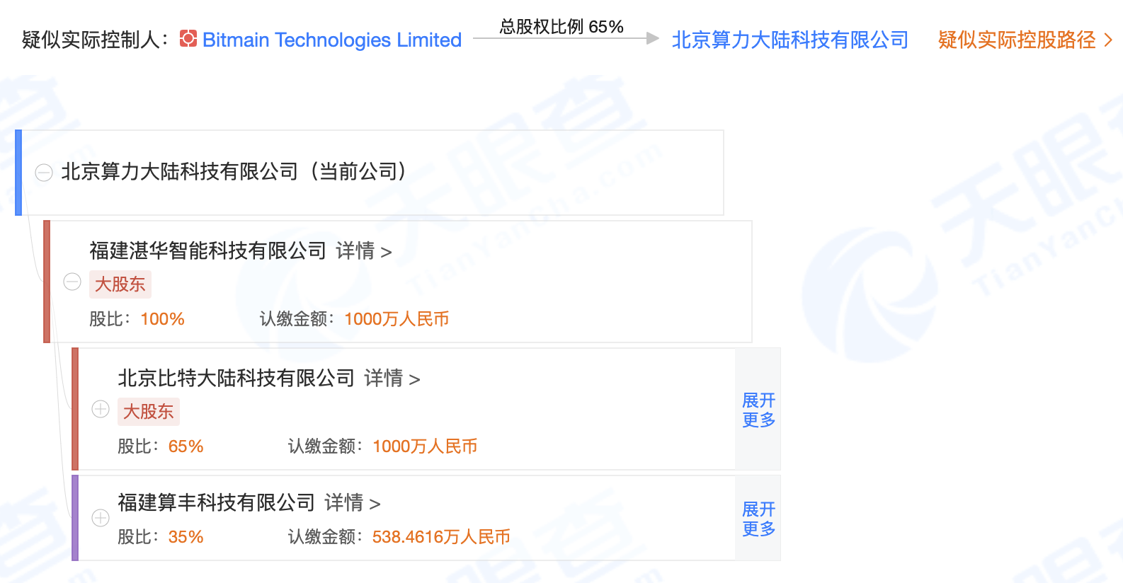 据天眼查APP显示,9月16日,北京算力大陆科技有限公司成立,注册资本1000万元,法定代表人为詹克团,注册地址为北京市海淀区,公司经营范围包括技术开发、技术咨询、技术转让、技术推广、技术服务;基础软件服务;应用软件服务等。该公司由福建湛华智能科技有限公司全资持股,后者由北京比特大陆科技有限公司与福建算丰科技有限公司共同持股,持股比例分别为65%、35%。