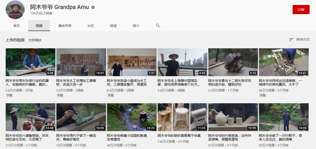 阿木爷爷在油管的走红,也离不开与YouTube官方的沟通。阿木爷爷最早的定位是乡土美食频道,后来在阿木爷爷运营者和YouTube官方运营策略师、西瓜视频运营方共同商议过后才决定,日后专注做以个人IP为主的传统木工形象。