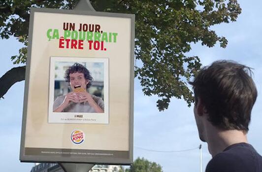 今年,汉堡王在攻占法国领土的过程中又出了“怪招”,要把普通消费者吃汉堡的照片搬到户外广告栏上,以此吸引未涉足城市消费者的眼球。