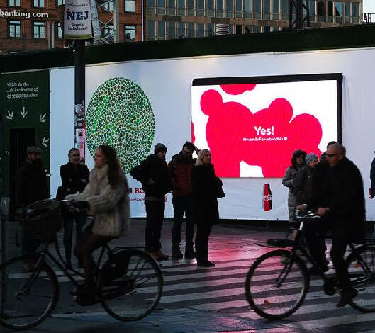 那么这个绝大部分人都看不懂的广告,会讨巧吗?你别说,还真有各种年龄段的路人被这则广告迷住,想要看看这个奇怪的画面到底有什么鬼,这则只有色盲症患者才看懂的图片也是利用窥探好奇心的战略帮助可口可乐完成了营销战略。