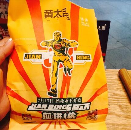 《煎饼侠》热映期间,黄太吉承诺,凡是拿此电影票根到店内即可免费领取煎饼一份,并以煎饼侠公仔和手机壳占据各个门店,既对电影进行了二次宣传,又借电影火热之风将品牌推向另一个高度。而黄太吉本身对于时尚,爱玩的年轻人定位也对《煎饼侠》电影的营销做足了预热,二者在没有协议,没有签约的形势下竟达到了高度契合。