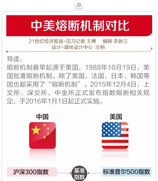 熔断机制最早起源于美国,其初衷就是为了避免股灾,在1988年制定。法国、日本、韩国等国也都采用了“熔断机制”。美国就1997年触发了1次熔断机制。但是为什么熔断机制在A股一实施,就遇到1月4日、1月7日两次大的波动?
