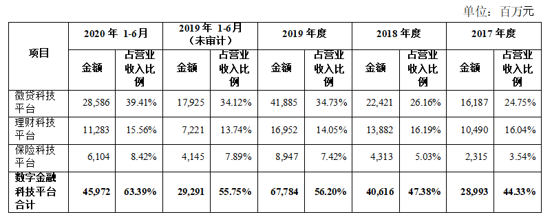 根据招股说明书:截至2020年6月30日,公司微贷科技平台促成的消费信贷余额为17,320亿元,小微经营者信贷余额为4217亿元。