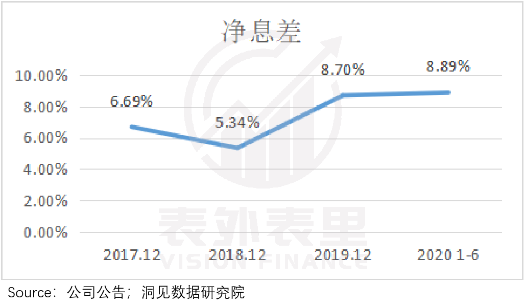 另一个不降反升的反常之处表现在2019年到2020H1的净息差变化。