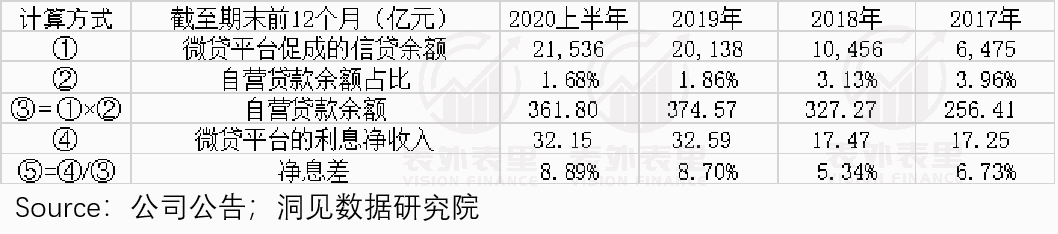 根据招股书和问询函披露,我们加权了蚂蚁集团的信贷总余额、自营贷款余额占总余额的比重、微贷科技平台的利息净收入,计算出蚂蚁自营贷款的净息差。计算过程如下图所示: