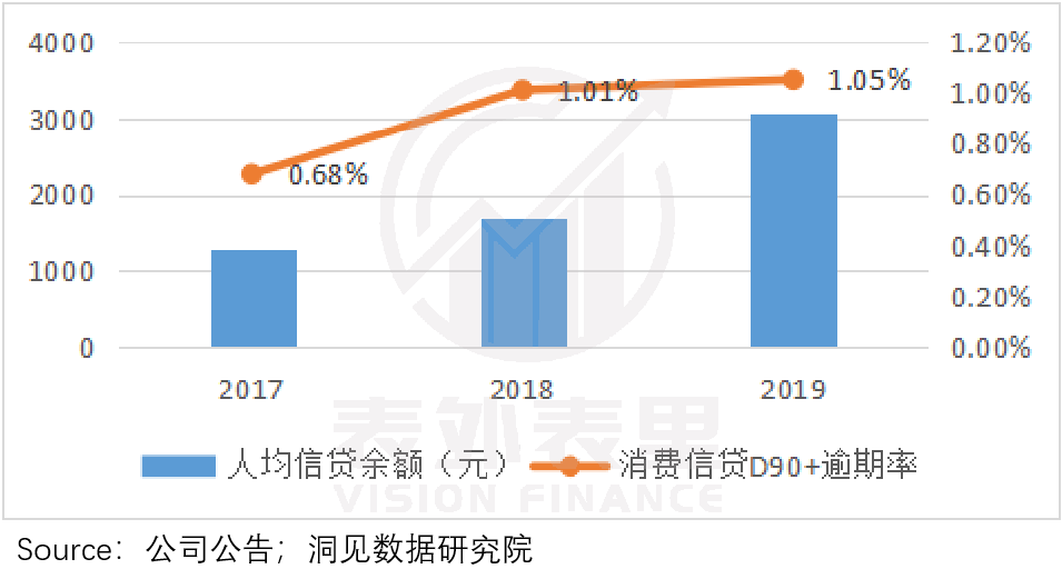 2017年-2019年,在人均信贷余额同比大幅上涨的情况下,信贷逾期率并未出现增长异常的情况。