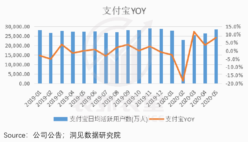 因此,支付宝2020H1的信贷规模和DAU同比2019年有大幅提升。