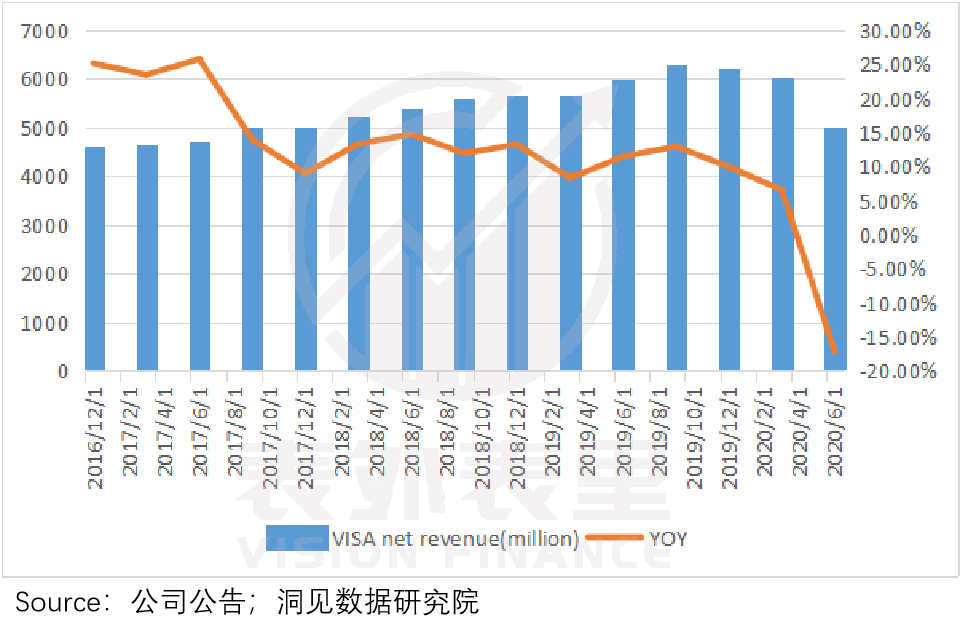 而宏观环境风险对金融行业及企业的影响,是必然的,疫情面前没有人能独善其身。跟蚂蚁集团情况类似,收入端的波动会间接受到宏观环境影响的还有VISA。