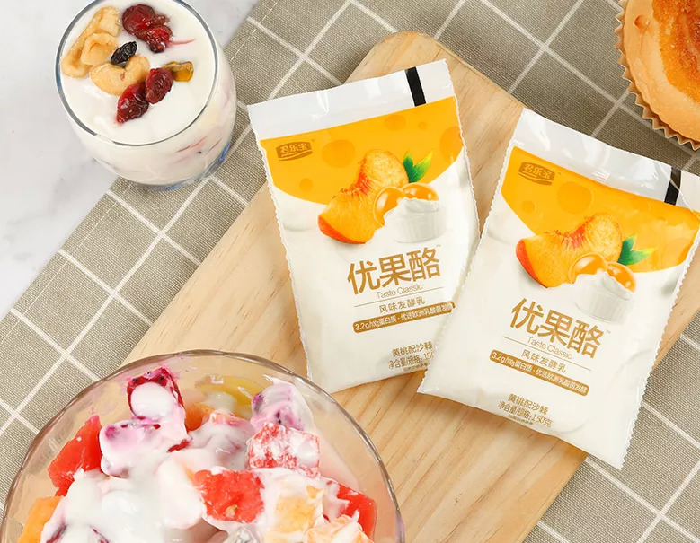 黄桃沙棘味的君乐宝优果酪风味发酵乳;图片来源:君乐宝百汇天猫专卖店