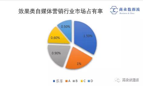 而在微信平台,由于市场分散,实际上留给乐享的机会也是非常少。由于新媒体营销市场极其分散,尽管是效果类自媒体营销行业市场排名第一,但乐享只占了1.5%的市场。