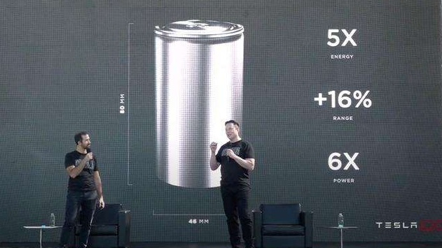 图3:马斯克在电池日上展示无极耳电池参数。来源:特斯拉