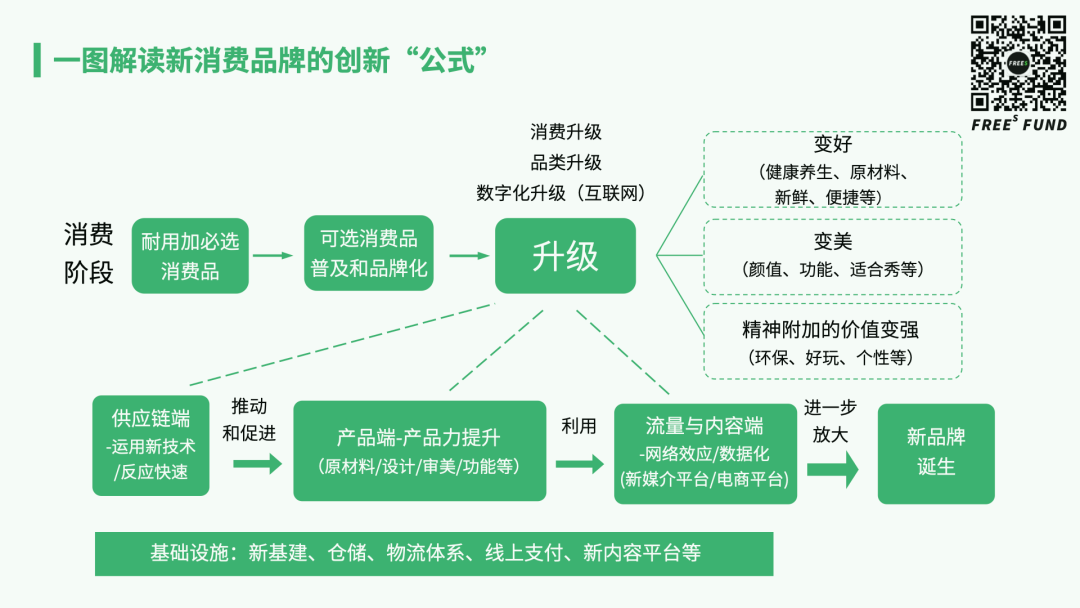 我们一起来看一下峰瑞资本创始合伙人丰叔的这张中国消费品创业创新公式,就很容易理解了。