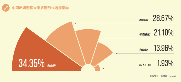 旅行社官网是中国游客选择最多的旅行团预订渠道,其次为营业部门市。超过 85% 的中国游客未来出境旅游时,仍会选择旅行社提供的各类旅游产品。其中,自由行(含半自由行)类产品需求最大,其次为参团游产品。