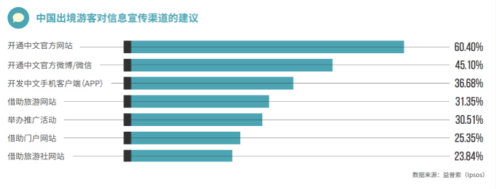 对于最想从何种渠道获得相关信息,中国出境游客选择了境外旅游城市开通中文官方网站。