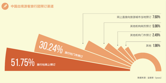 对于旅行社,中国出境游客的关注点依次为旅行社信誉、当地导游质量和水平、日程的合理安排和游览节目的品质。中国国际旅行社和国旅在线、中青旅和遨游网、中国旅行社、凯撒旅游、众信旅游、春秋旅游、广之旅、携程网等中国前十家旅游集团,中国出境游客选择最多。