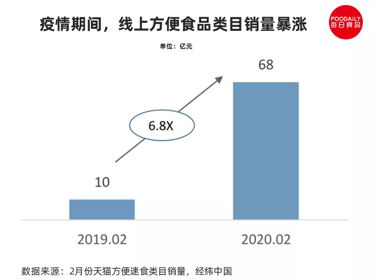 近几年方便速食高速发展的过程中,冻干、自热等技术的发展带来极大的推动作用。另外,不得不提的是,疫情的意外出现使得方便速食市场快速扩容,并加大了线上渗透率。2020春节期间,消费者恐慌性囤货,线下货架一个又一个地被抢空,电商销量同比增长700%。