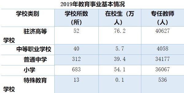 普通小学人数方面,2019年,青岛招生10.7万人,在校生58.4万人,毕业生9.5万人。