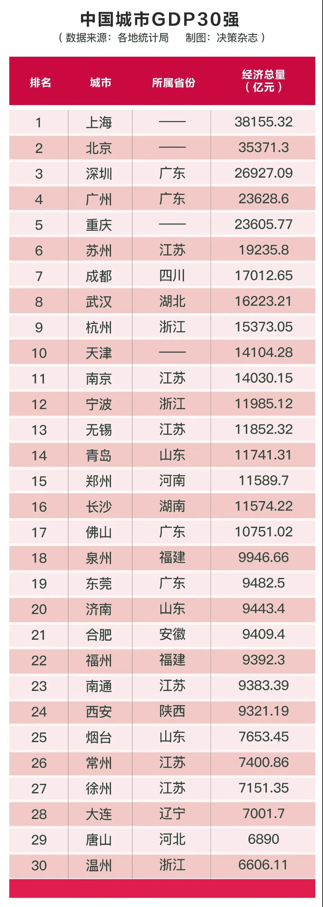 2019年主要城市GDP 图表来源|决策杂志(特此感谢)