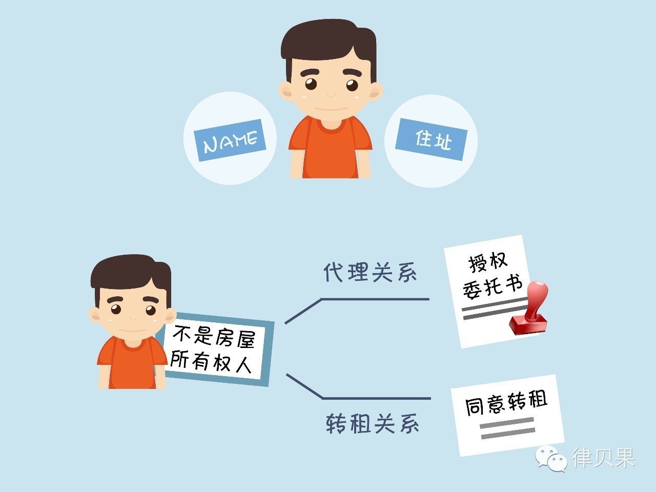 除了要查看出租人的名称(姓名)是否完整及准确、出租人的住所地(住址)是否详尽外,更要注意出租人是否为房屋所有权人,如果不是,则可能存在着代理关系或者转租关系。若存在代理关系的,需要有产权人委托签约人的授权委托书原件(最好是经过公证的授权委托书)(若催催与乙签订房屋租赁合同时发现该房屋所有权人是甲,则需要看乙是否有甲的授权来处理这间房屋的租赁事项);若存在转租关系的,则需要产权人同意转租的书面证明文件原件,并在合同中约定如产权人同意转租的书面证明文件不真实时,转租人应承担何种责任。(甲将自己的房屋出租给乙,此时催催想从乙处租房,则要考虑甲是否同意乙将房屋转租)