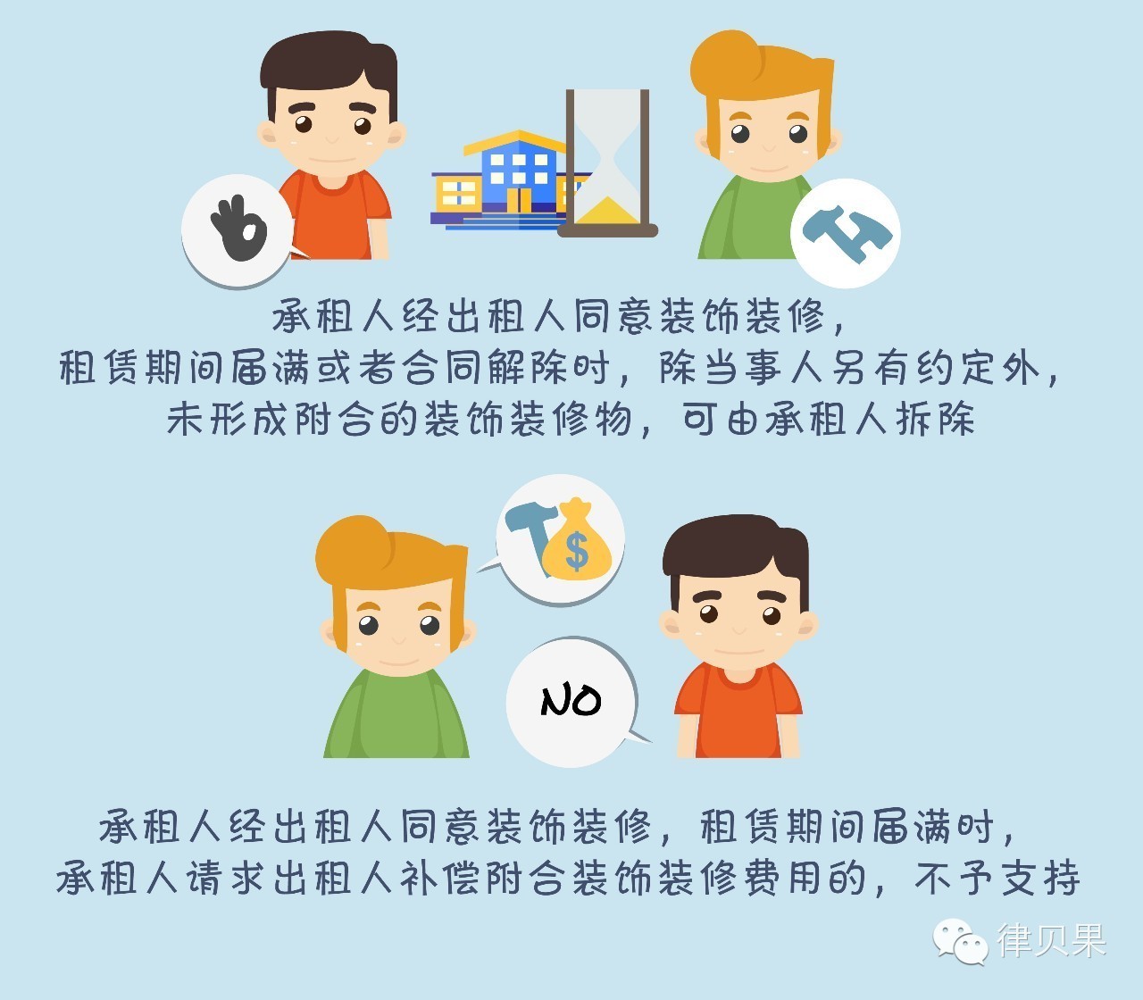 承租人经出租人同意装饰装修,租赁期间届满时,承租人请求出租人补偿附合装饰装修费用的,不予支持。但当事人另有约定的除外。(租来的房是别人的房,就算催催想修个柜子也不能随便凿墙,租来的房子装修需要经过出租人同意。没有约定的情况下,租期届满后像钉在墙上的自画像这种东西是可以拆除的,但是要把墙上的钉子眼修好。类似换了个窗户这种不能拆除的情况下,一般也不能要求出租人补偿装修费,毕竟不是人家求着你换的)
