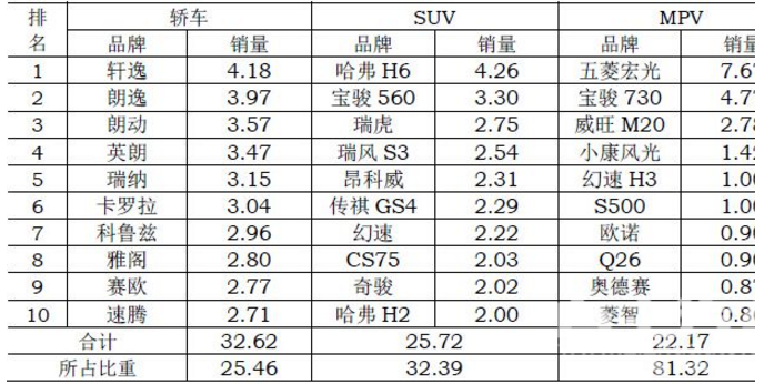 自主品牌强势占据SUV/MPV市场 轿车战略集体缺失