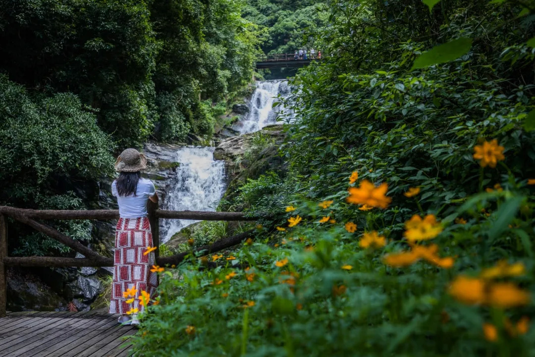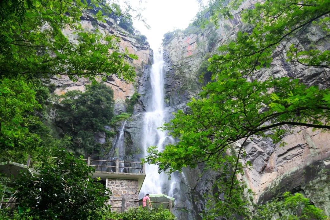 走下妙高台旁的山路,有一处可稍作歇息的亭子,露台是俯瞰千丈岩的最佳位置——湍急奔腾、夺崖而出的涧水跃入你们的双眼!如雪飞溅、一泻千丈。