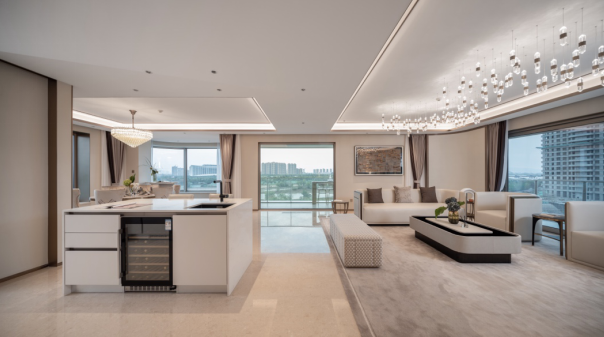 并且,项目远不同于市场上的普通装修住宅,其超高装修水准体现于生活功能的各细节处。比如木板或石材的硬装基础铺陈全屋;入户门为铸铝装甲门,厚度达100mm,价值或近7万元;选用定制橱柜,油烟机为博世、,更不用说AEG蒸烤一体机、AEG内嵌式冰箱全部随屋赠送……。