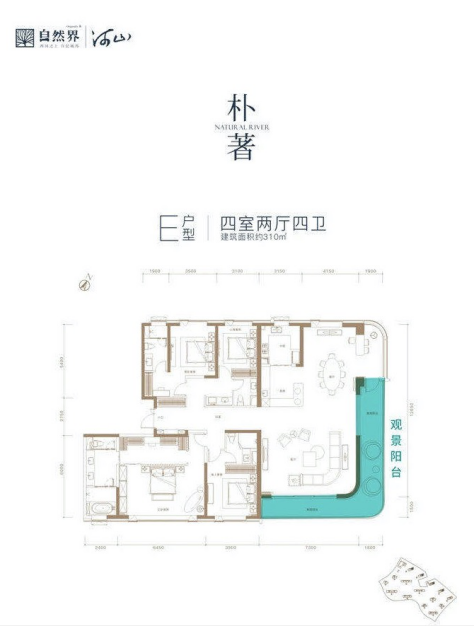 所推在主力户型为240㎡四室两厅三卫的“揽晖”、“晞湾”和310㎡四室两厅四卫的“朴著”。240㎡产品均为7米南向大横厅,且两卧一卫全朝南,不同的是“揽晖”产品阳台为弧形转角;310㎡产品两卧一卫朝南的同时,拥有总长约18米,270°弧形转角无遮挡观景阳台,视角无限延生,揽尽自然风光,为目前市场少有的优质观景住宅产品。