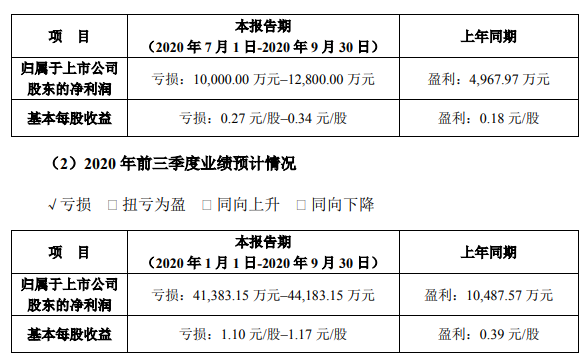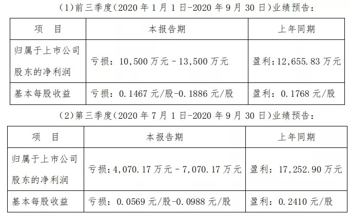 欢瑞世纪则亏损更多:预计2020年前三季度净利润为亏损1.39亿元,上年同期为盈利566.85万元。