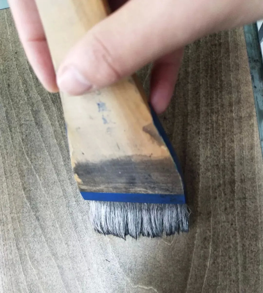 刷墨汁,清水稀释过的墨汁刷在木板上,为了在刻的过程中能更好的看清黑白对比的效果,不要涂的太黑,后期打草图看不清楚。