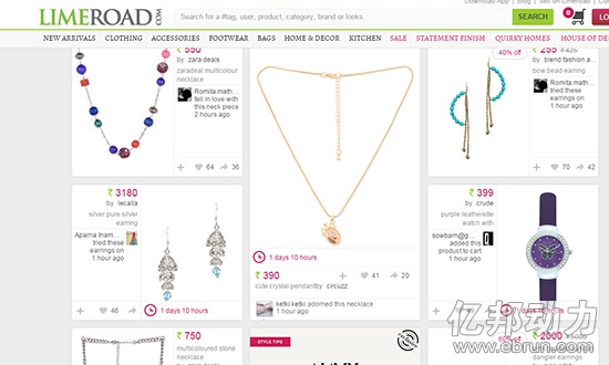 LimeRoad于2012年10月上线,同Roposo的出发点相似,其也想搭建一个社会化时尚发现平台,但LimeRoad的发现机制以UGC为主,主要通过剪贴簿的形式鼓励用户拼出喜爱的、富有创意的搭配。截止2015年,LimeRoad时尚剪贴簿数量达150万,用户活跃度在不到一年的时间里增长了一倍,拥有的有机流量近80%。