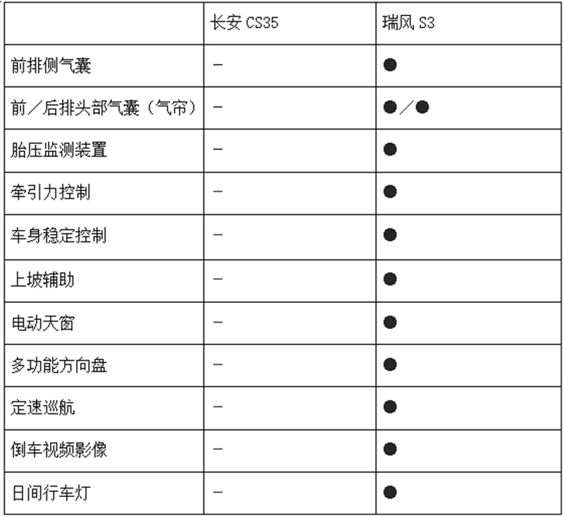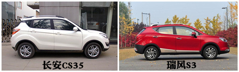 外观对比:长安CS35简洁协调,瑞风S3时尚激进。