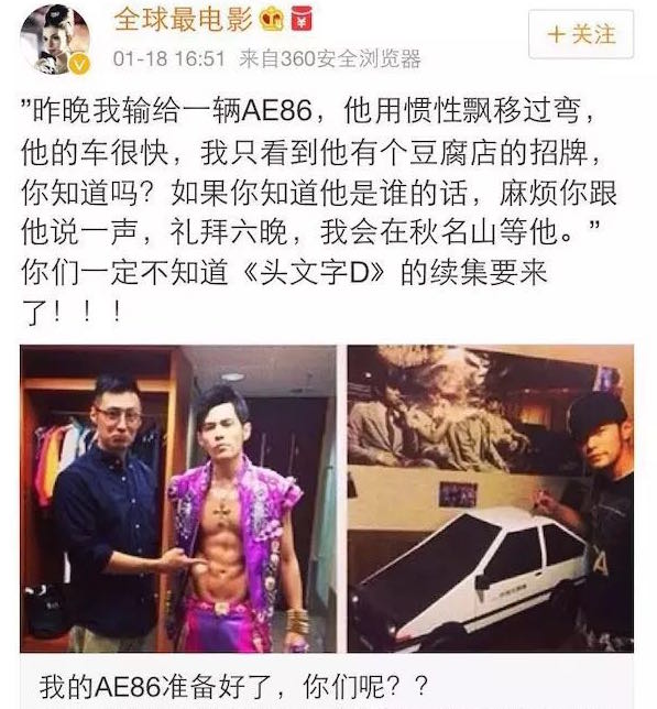 昨日,网爆电影《头文字D》续集正在筹备,预计将要在年底上映。