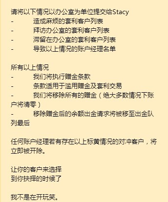 据铁汇投资者在网上发文来看,目前依然有大批的投资者投诉无门,只能焦急等待资金返还。有投资者收到铁汇的通知,称目前仍在排查赠金账户中。具体的出金时间依然是个谜。