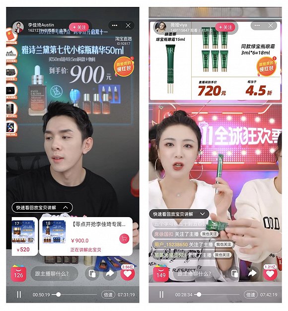 数据显示,双十一预售开启10分钟后,淘宝直播引导的成交超去年全天,增长达4倍。在美妆领域,共有12个单品在淘宝直播1小时过亿。