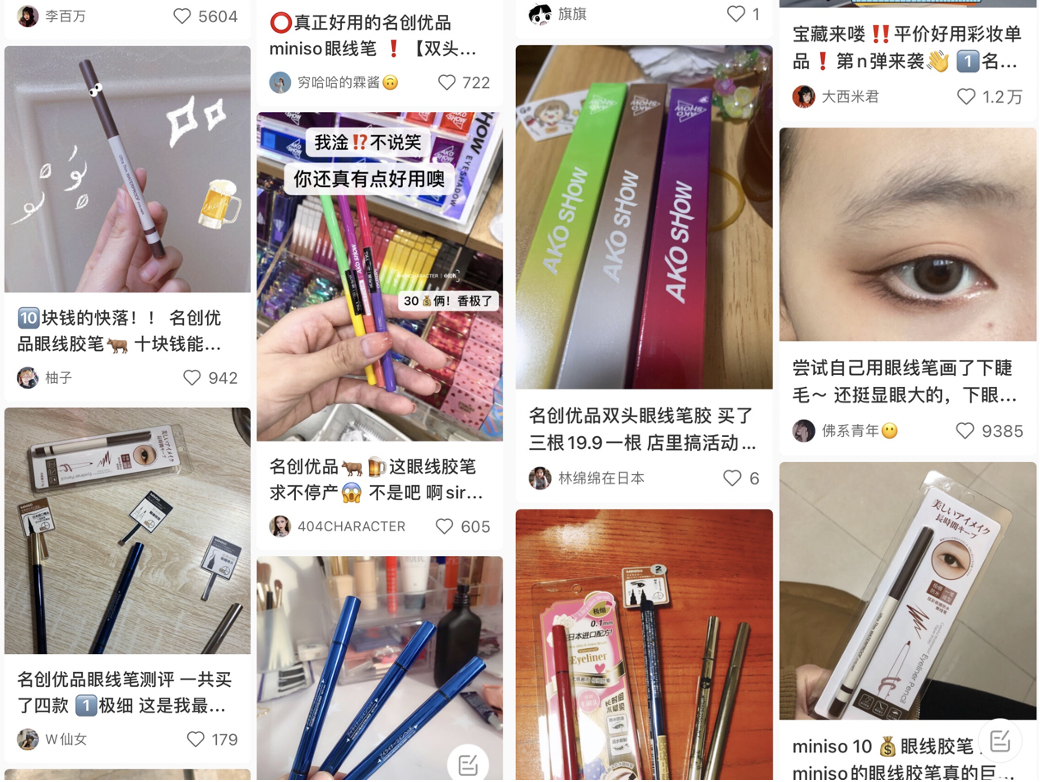 平台上名创优品眼线笔的讨论和推荐都很多