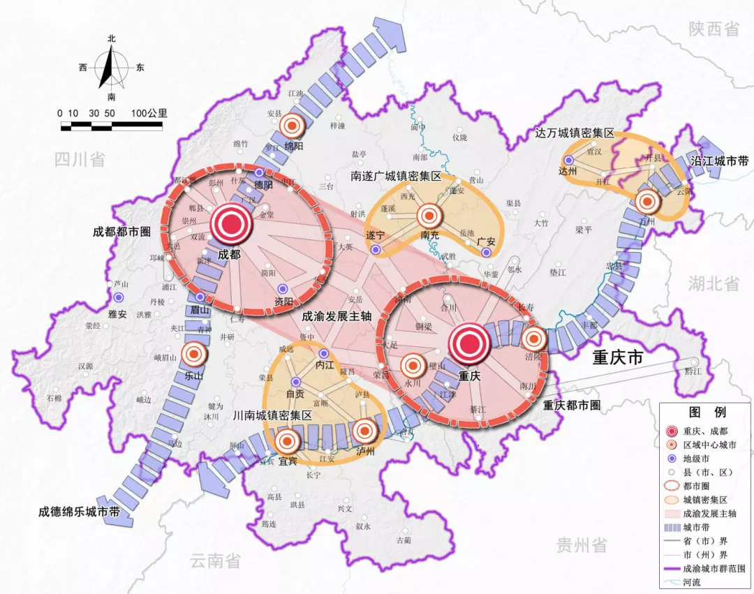 该区域位于“一带一路”和长江经济带的重要交汇点,东西最宽约280公里,南北最长约250公里,总面积3.31万平方公里;属于成都平原经济区“内圈”,是“天府之国”的中心,四市中心城区均位于轨道交通半小时经济圈和高速公路一小时经济圈。