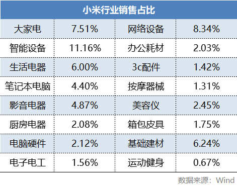 在集团之外的销售占比统计中,小米非手机的业务每一项品类,也纷纷占据一定的市场份额。