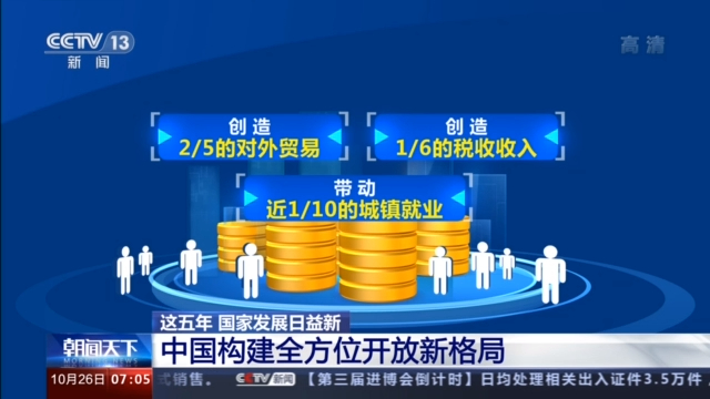 五年来,我国连续增设了17个自贸试验区,总数达到了21个,260项制度创新成果向全国复制推广。这五年,我国货物贸易进出口额从(2015年)3.95万亿美元增加至(2019年)4.58万亿美元。这五年,我国利用外资的水平不断提高,外资创造了2/5的对外贸易、1/6的税收收入、带动了近1/10的城镇就业。