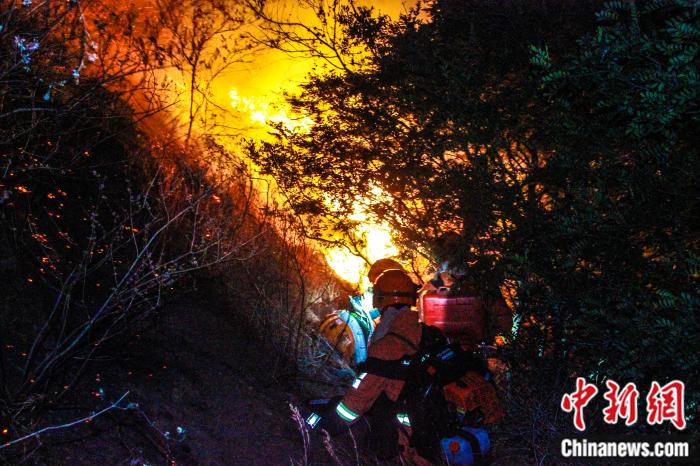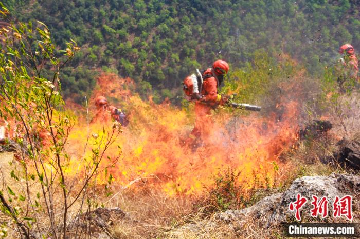 资料图:森林消防指战员灭火作战中。云南省森林消防总队特勤大队供图